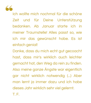Meine Aufgabe ist es Dir die Angst vor der eigene Größe zu nehmen, damit Du in voller Verantwortung Deine eigene berufliche Zukunft kreieren kannst.