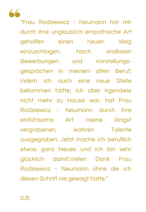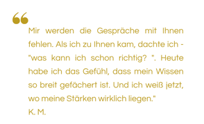 Mit mir bekommst Du eine erfahrene und emphatische Mentorin, die Deine aktuelle Situation nachfühlen kann.