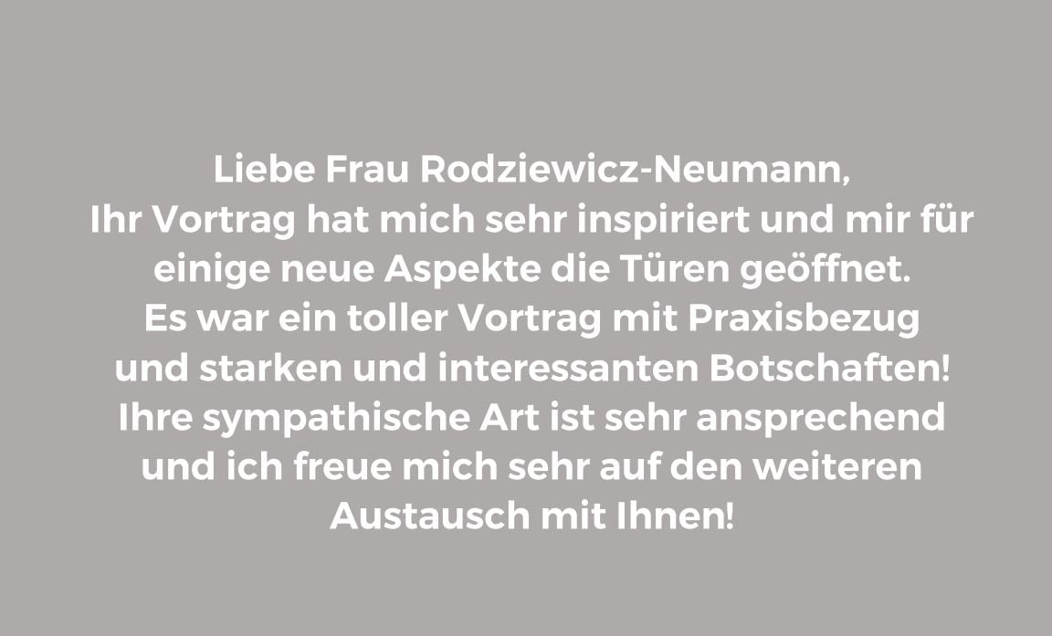 Selbstreflexionsprozessen unterstützt. Ihre besondere Fähigkeit Mut und Zuversicht vermitteln und ihre hohe Empathie haben mir sehr geholfen, problematische Situationen gut und unbeschadet zu