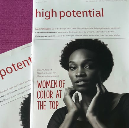 Das Fachmagazin hat mich für ein Kurzinterview über das Thema „Frauen und Führung“ angesprochen. Das Interview wurde in der neusten Printausgabe April-Juni 2020 veröffentlicht und ist auch online verfügbar. Das Magazin "high potential" mit vielen wertvollen Beiträgen u.a. zum Thema Karriere, Berufseinstieg und Zeit-management richtet sich insbesondere an weibliche und männliche Hochschulabsolventen, Wirtschafswissenschaftler, Experten für die digitale Transformation - Führungskräfte von morgen.